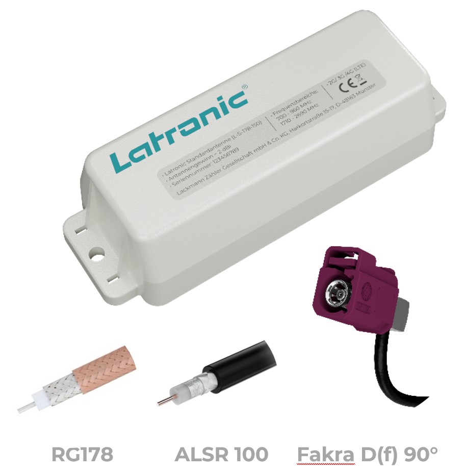 Die Latronic Standardantenne ist eine kompakte LTE-Antenne zur zuverlässigen Mobilfunkanbindung von Smart-Meter-Gateways bei normalen Empfangsbedingungen im Zählerschrank.